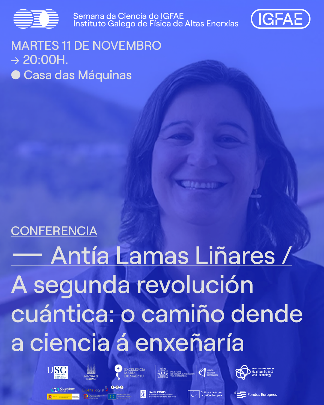 O acto central desta semana será a conferencia de Antía Lamas Liñares, física compostelá que actualmente é científica cuántica principal en Amazon Web Services, liderando o traballo de redes cuánticas nesta multinacional. Terá lugar o martes 11 de novembro ás 20.00 horas na Casa das Máquinas (Rúa das Galeras, s/n).